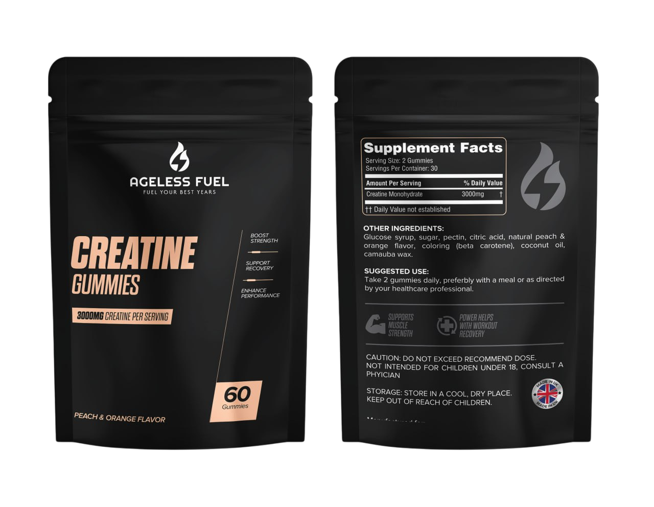 Ageless Fuel Creatine Gummies boost energy, improve performance, and support recovery — a tasty, convenient daily source of monohydrate.